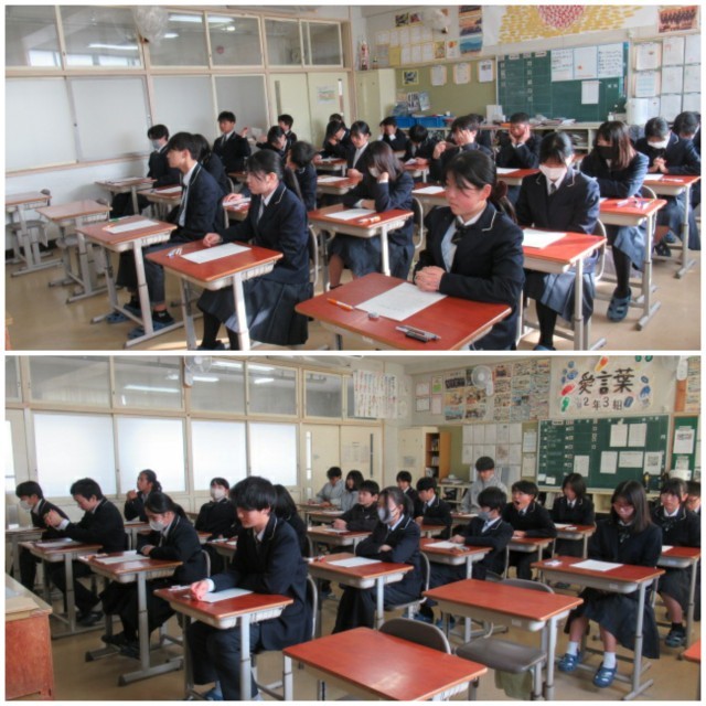 2年生のテスト開始直前の様子です。今日がラストです。努力した成果が出ますように!