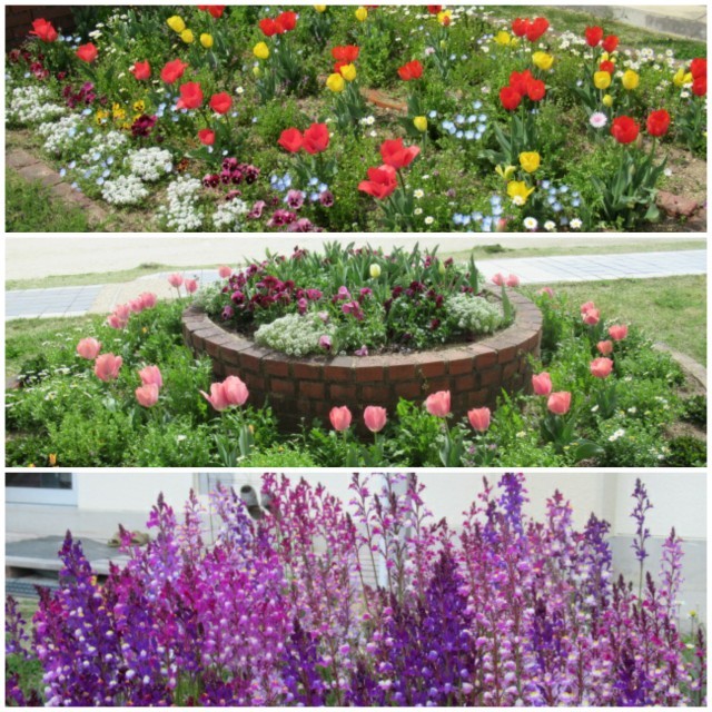 4月になりました。雨で桜が少し散ってしまいましたが、学校の敷地内にはほかにもたくさんの花が咲いています。用務員さんが心を込めて手入れをしてくださり、花瓶にアレンジして校舎内にも飾ってくれています。4月らしい、明るく華やかな雰囲気になっています。