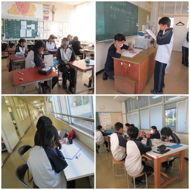 明日からテストです。6限は、担任の先生との進路相談とテスト勉強を並行しておこなっていました。ラストスパートです。
