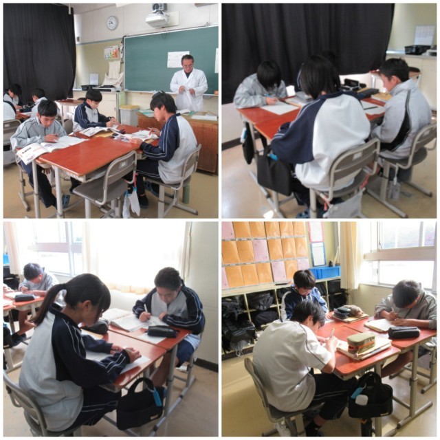 今日から定期テストです。1年生も、登校後すぐに静かに勉強していました。中学生らしくなってきましたね。
