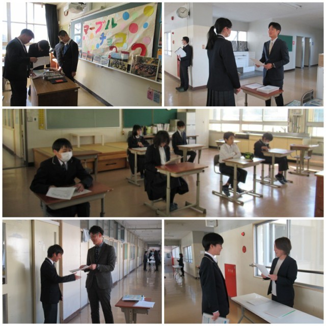 最後の学活が行われました。担任の先生から温かい言葉とともに通知表を受け取りました。1年間過ごしてきたこの教室とも、いよいよお別れです。春休みは、安全に気をつけ、命の大切さを忘れずに過ごしてほしいと思います。