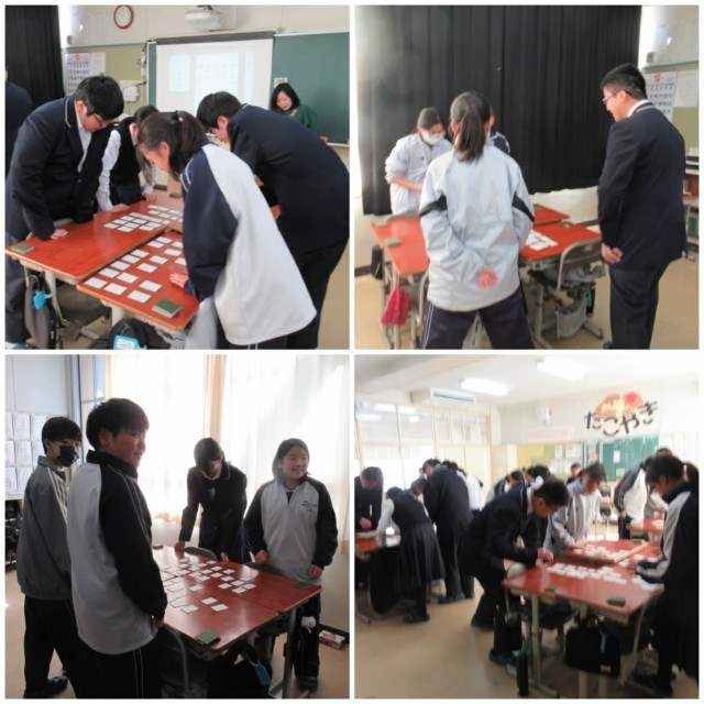 1年生は今、3学期に開催される百人一首大会に向けて、百人一首を暗記しています。札を取るスピードもかなり速くなってきましたよ。