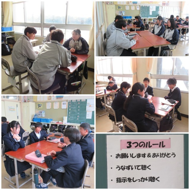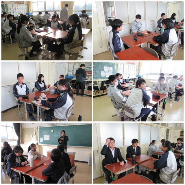 1年生は3月に名古屋班別研修でに出かけます。希望の行き先ごとに班を作り、計画を練っています。金曜の6限は、研修先の方への質問を考えていました。