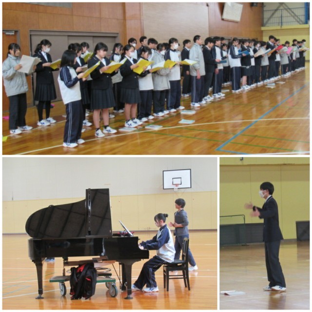 今日の6限、今週末の卒業生を送る会に向けて、2・3年生は合唱練習をおこなっていました。きっと当日は素晴らしい歌声をお互いに届け合うことと思います。楽しみです。
