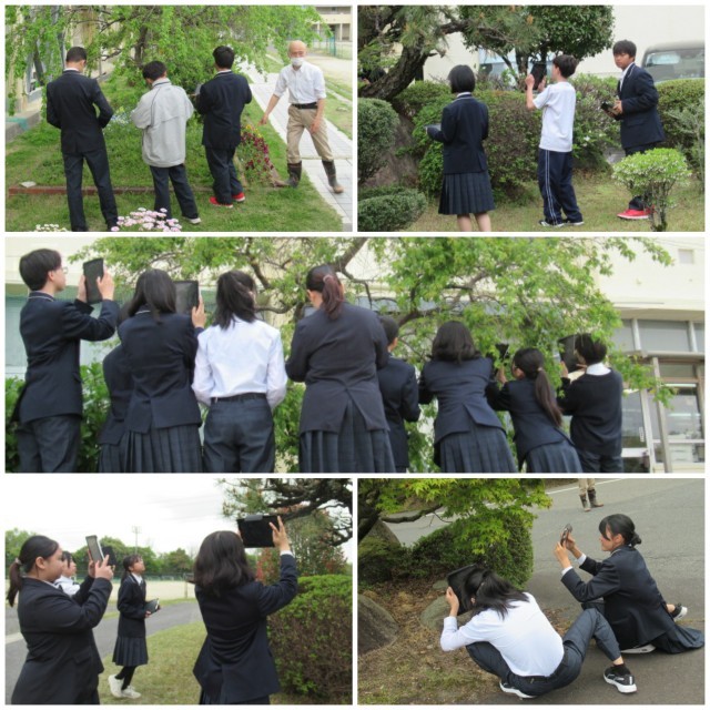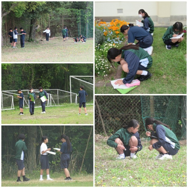 昨日から、教科の授業が本格的にスタートしました。春のここちよい気候の中、1時間目には多くの生徒が校舎の外へ出て活動していました。1年生は理科の授業で、春の生き物探しに取り組んでいました。身近な自然の中で、季節の変化を感じることができました。2年生は美術で、自分が気に入った木の枝を撮影し、それをもとに水彩画を描くそうです。3年生は体育で、体力テストに向けて、自分なりに工夫した体づくりに励んでいました。