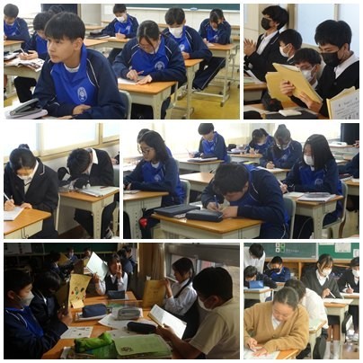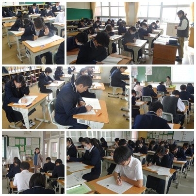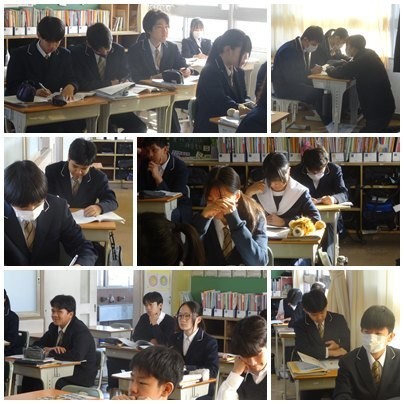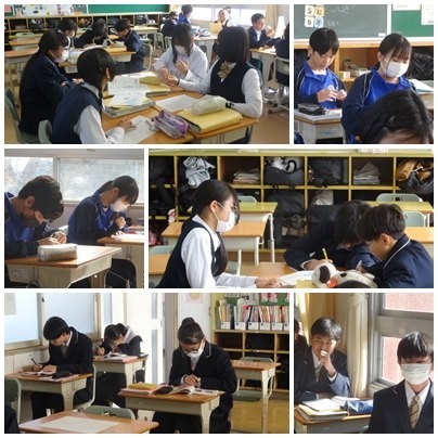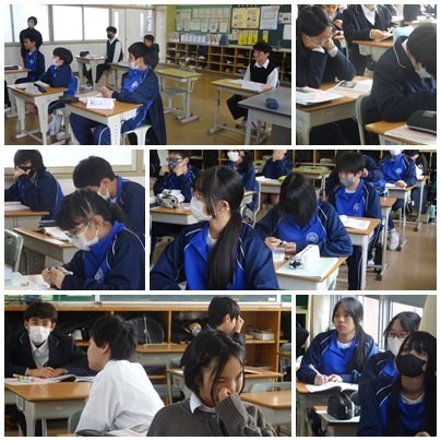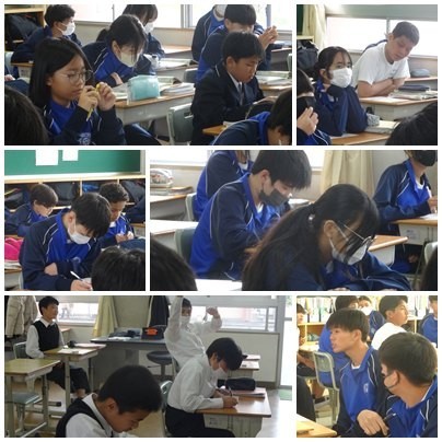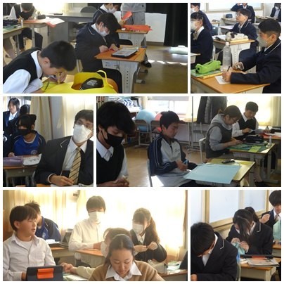今日の授業の様子です。1年生は英語と数学、2年生は国語と数学、3年生は英語と音楽でした。