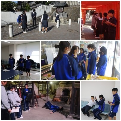 1年生は、めめど食堂、鳥静、瀬戸蔵ミュージアム、深川神社、東名ボールの5か所に分かれてロケ地撮影を行いました。天気にも恵まれ最高の撮影日和でした。