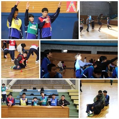 A組さんは市内7つの学校とのスポーツ交流会に参加しました。いろいろな種目に4つのグループに分けたチーム対抗で楽しく取り組むことができました。