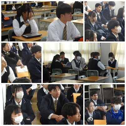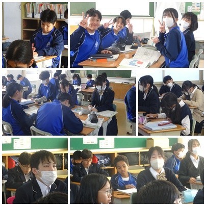 本日の授業の様子です。寒い一日でしたが、体育の時間には走ったり、楽しそうな声を出したりしてがんばる生徒がたくさんいました。