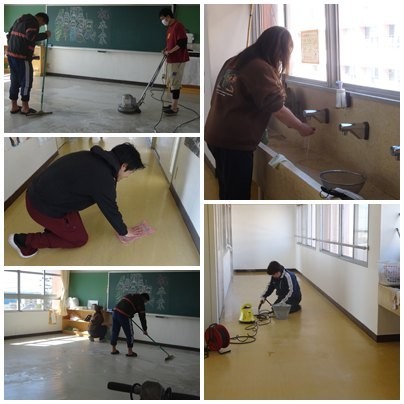 本日の授業の様子とワックスがけの様子です。1,2年生は落ち着いて学習のまとめをしていました。3年生の先生たちは3年フロアのワックスがけをしてくれました。次に使う2年生が気持ちよく使ってほしいという願いからです。みなさんもぜひ来週の大掃除では次に使う人のことを考えてきれいにしてくださいね。