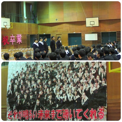 今日の送る会に向けて、1ヶ月以上前から取り組みはじめ、昨日も遅くまでリハーサルなどを行っていました。中心となった生徒会役員や学級議員の活躍で、本当にすばらしい「卒業生を送る会」になりました。みなさんお疲れ様でした。
