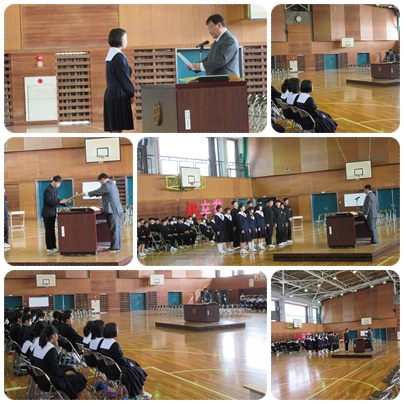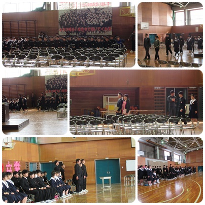 卒業式予行練習・3年生皆勤賞表彰式(3月5日)