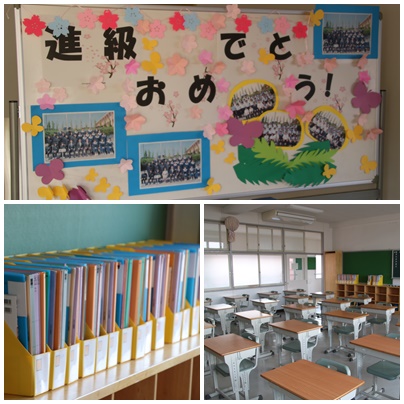 新年度2日目、真新しい上靴が並んでいるげた箱、思いの込められたメッセージが掲示されている廊下、机・椅子が整然と並び、ごみ一つ落ちていない教室、わかりやすく今日の連絡が提示されている教室、すべてが緊張感を持って登校する子どもたちを温かく迎えてくれます。