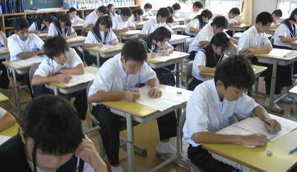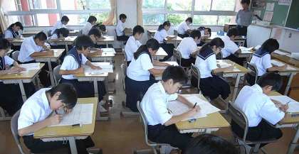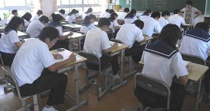 1時限目から5限目まで、3年生はSテスト、1・2年生は課題テストを行いました。3年生は、進路選択の資料となるテスト、1・2年生は、夏休みの課題の定着度を確かめるテストです。問題用紙に向かう生徒たちの顔は、真剣そのものでした。