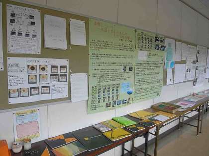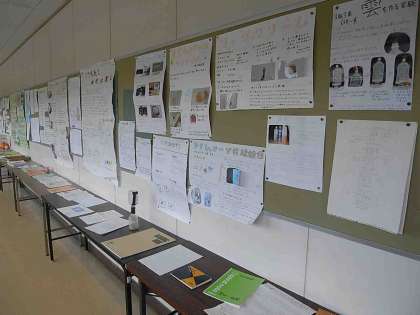 3年生が夏休み中に取り組んだ自由研究作品が展示されています。時間と労力をかけたであろう作品は「さすが」の出来映えです。