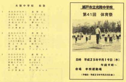 明日は、第41回体育祭 公開日 2013/09/18 更新日 2013/09/18 学校の様子 生徒会を中心に進める本校の体育祭。生徒たちの「熱い」姿を、ぜひご参観ください。 体育祭プログラム いいね(0)