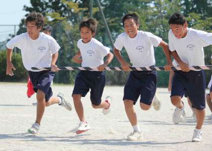 上から、2年学年種目、リレー、綱引きの一コマです。どの顔も真剣です。