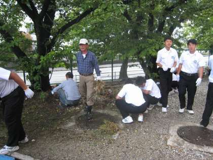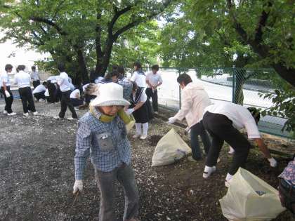 本校の生徒と共に地域の少年センターの方々と草取り作業を行いました。草取りをしながら地域の方々とふれあうこともこの行事の目的のひとつです。朝から昼過ぎまで雨が降っていましたが、給食後からとてもよい天気になり草取り作業はスムーズに行うことができました。お忙しい中、ご協力いただきありがとうございました。