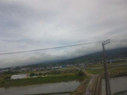 富士山が雲の間からみえました。写真ではよくみえないかもしれません。
