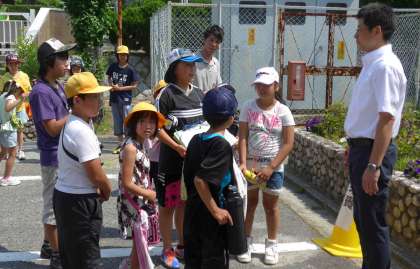 縦割り班ごとに萩山台を周遊しながら各所に設置されたチェックポイントの課題をクリアしていく行事だそうです。