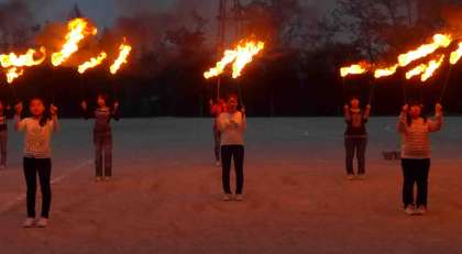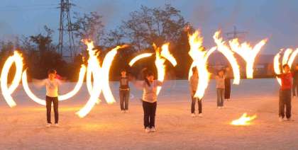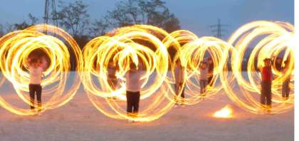 野外活動のキャンプファイヤーで披露するトーチトワリング。