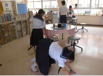 清掃の時間 公開日 2014/06/06 更新日 2014/06/06 学校の様子 光陵中生は、清掃活動にも熱心に取り組んでいます。 写真上は保健室掃除、写真下は1階廊下掃除です。 きれいに清掃された校舎で、落ち着いた生活を送っています。 いいね(0)