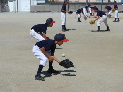 1年生が多く、これから力をつけていくチームです。まずは、基礎練習の反復から取り組んでいます。
