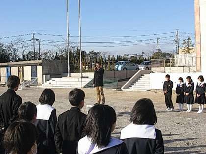 時折吹き付ける風は大変に冷たく厳しいものでしたが、微動だにしない光陵中生徒たちの姿は、頼もしさを感じさせるものでした。