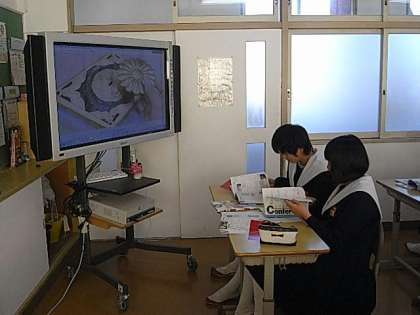 大型モニターに資料を提示して、歴史学習に取り組んでいました。