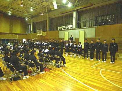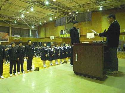 卒業式を明日に控え予行を行いましたが、その前に皆勤賞の表彰を行いました。