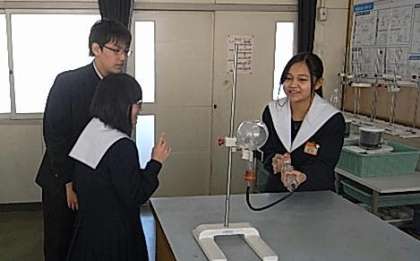 興味深げに器具を操作し変化の様子を観察した生徒たちは、雲の発生のメカニズムをとらえていきました。