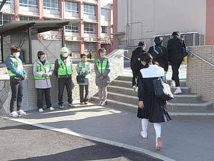 少年センター あいさつ運動 公開日 2015/03/24 更新日 2015/03/24 学校の様子 平成26年度最後の登校日。 少年センターの方々に、生徒の登校を見守っていただきました。 いつも本当にありがとうございます。 また、来年度もよろしくお願いいたします。 いいね(0)