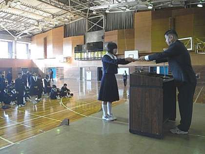 皆勤賞の表彰 公開日 2015/03/24 更新日 2015/03/24 学校の様子 本年度1年の間、欠席なく登校できた生徒たちに「皆勤賞」を渡しました。 毎日、健康な体を維持し、元気に通い続けることができました。 本当に素晴らしいことです。 いいね(0)
