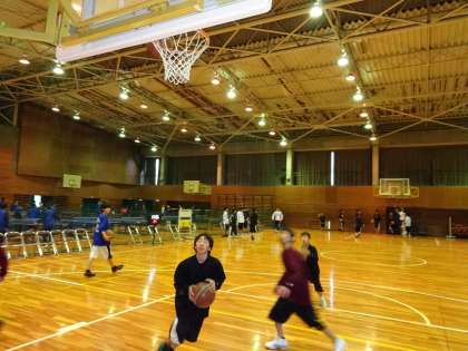 バスケットボール部。今日は水無瀬中との練習試合。試合前のアップの様子。