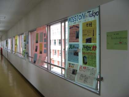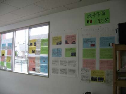 1年生は校外学習(リトルワールド)のまとめが廊下に掲示されています。