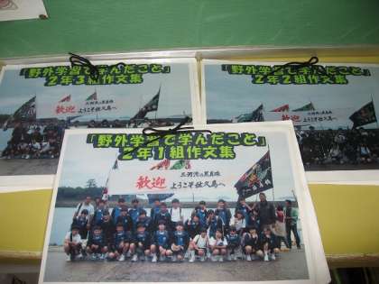 2年生は野外活動のことをかいた作文集が置かれています。