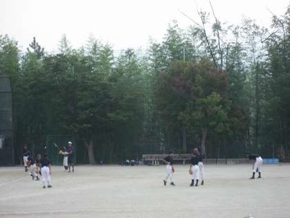 曇っているとはいえ、外の気温はやはり高いですが、運動場では野球部が練習をしていました。祖東中の生徒と合同で練習をしています。