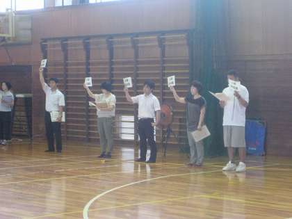 本日は雨のため、体育館への避難になりました。