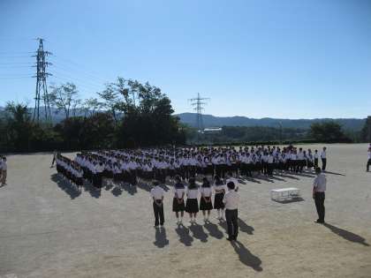 雲一つない青空のもと、ほとんどの生徒が開始5分前に整列することができました。