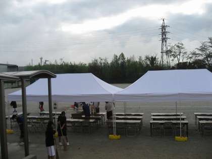 今朝の段階ではテントもはられていない状態からのスタートでした。しかし、職員や朝練習のあった部活動の生徒を中心に9時開会に、十分間に合うように準備することができました。