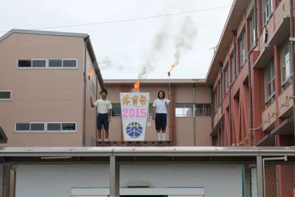 3年生の代表生徒2名の聖火が入場し、そして点火です。