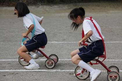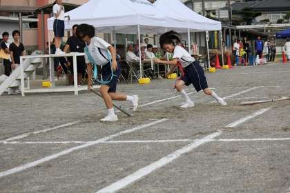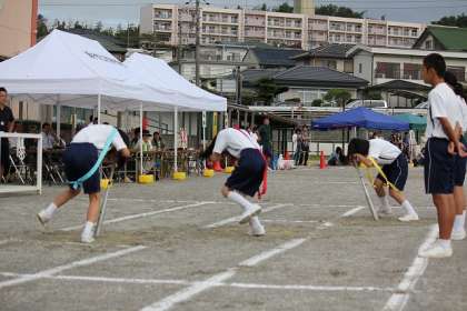 駆け抜けろ 光陵生! 体育祭その7 公開日 2015/09/19 更新日 2015/09/19 学校の様子 最初の演技は「アンフリーソウル」です。 わかりやすく表現すれば、障害物競走です。 トラック1週を4人で分けて走ります。全部で2周しますので、合計で8人が走ります。1周の間に障害は5つあります。 1走には2つの障害が用意されています。1走は「ぐるぐるバット」と「三輪車」の障害をクリアします。 いいね(0)