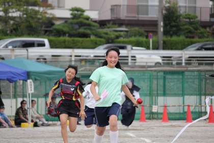 駆け抜けろ 光陵生! 体育祭その25 公開日 2015/09/20 更新日 2015/09/20 学校の様子 午後の最初の演技は「部活動対抗リレー」でした。 それぞれの部活動のユニフォームをきたり、バトンもボールやラケット、竹刀などを使ったりしました。先生部も飛び入りで参加しました。 いいね(0)