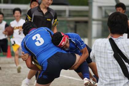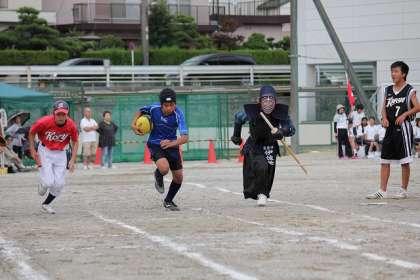 剣道部はゴールで、「面打ち」、ラグビー部は「タックル」をするなどのパフォーマンスをしていました。