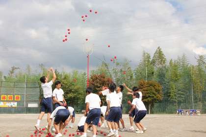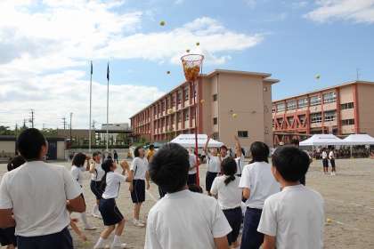 駆け抜けろ 光陵生! 体育祭その31 公開日 2015/09/20 更新日 2015/09/20 学校の様子 演技10は3年生の学年種目「玉入れ」です。 小学校では低学年で行うことが多いと思います。義務教育最後とあって、数年前から光陵中の3年生は玉入れを行っています。 かごの位置を高くしたり、男子がかごに近づけないように制限をしたりと工夫した玉入れになっていました。 いいね(0)