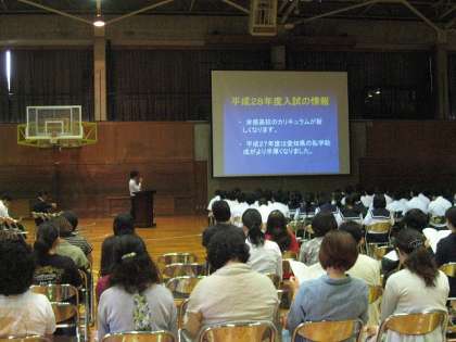 進路説明会(9月25日)その2 公開日 2015/09/25 更新日 2015/09/25 学校の様子 就職の話に続き、進路指導担当から、進学についての説明がありました。 3年生の保護者の方を中心に多くの方にご来校いただきました。ありがとうございました。 いいね(0)