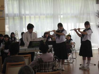 吹奏楽部 演奏会 in ミソノピア その3 公開日 2015/09/26 更新日 2015/09/26 部活動・対外活動の様子 「花」「夏の思い出」「ふるさと」などの曲も演奏しました。 演奏中にリズムをとったり、曲に合わせて歌詞を口ずさんでいたりする方がいらっしゃいました。すべて演奏が終わった後、「上手だった」「涙がでてきた」「聴いてよかった」などの感想が聞こえてきました。少し遅れましたが、「敬老の日」になったのではないかと思います。 いいね(0)