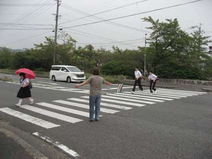 小雨が降る中、学校の近くの横断歩道などで、声をかけていただきました。