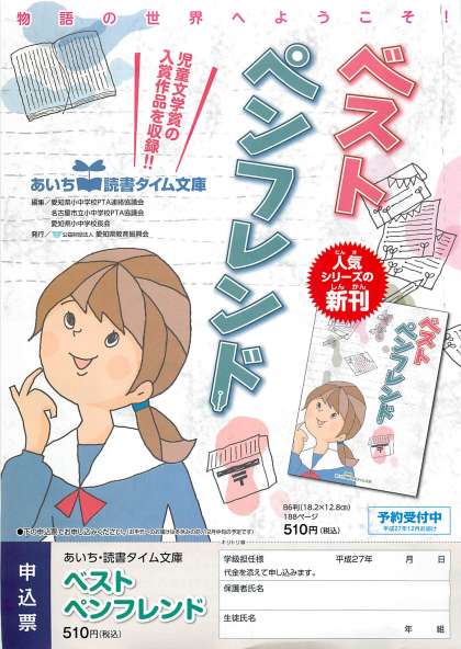 本日、お子様を通じて、あいち・読書タイム文庫 「ベストフレンド」(中学生・小学校5・6年生向け)の申込書を配布いたします。