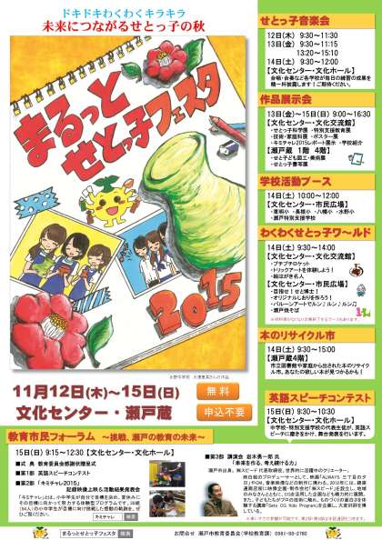 詳しくは、ホームページ右側にある配布文書の「まるっとせとっ子フェスタポスター・チラシ」をご覧ください。(下の画像を見やすくしてあります)